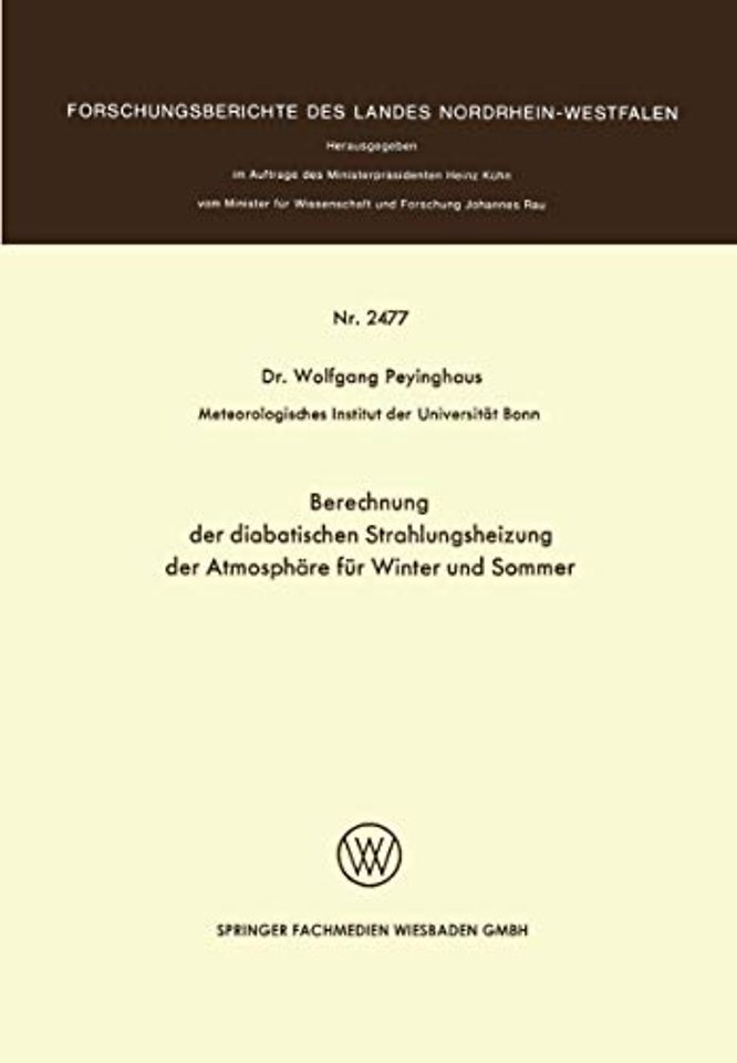 Diese Arbeit wurde ermöglicht durch ein vom Herrn Minister für Wissenschaft und Forschung des Landes Nordrhein-Westfalen gefördertes Forschungsvorhaben "Diabatische Strahlungsheizung der Atmosphäre", Gesch.-Zeichen 11 B 6 FA. Der aus diesem Vorhaben in 1973/74 finanzierte Autor hat die zugrunde liegenden Untersuchungen in Absprache mit dem unterzeichneten Zuwendungsempfänger, jedoch völlig selbständig durchgeführt. Die Veröffentlichung der vollständigen Theorie des Strahlungs modells erfolgt gleichzeitig an anderer Stelle (Banner Meteoro logische Abhandlungen). In der vorliegenden Arbeit wird die Theorie in gekürzter Fassung zusammengestellt; Variationen der Klimaparameter werden nicht berücksichtigt. Das Schwer gewicht liegt auf der Wiedergabe aller Terme des Strahlungs o haushalts im Meridionalschnitt der Nordhalbkugel (lOoS-90 N) für Winter und Sommer. gez. Prof. Dr. Michael Hantel Zusammenfassung Das Ziel dieses Forschungsprojekts ist die Aufstellung eines Rechenverfahrens zur Bestimmung eines Vertikalprofils der Strahlungsbilanz und damit der Erwärmungsrate der At mosphäre. Hierzu wurden zunächst sämtliche Glieder der Strahlungsbilanzgleichung getrennt in 21 Druckhöhen berechnet. Die Streu- und Absorptionsprozesse beim Durchgang der Strah lung durch die Atmosphäre wurden rechnerisch nachvollzogen, wobei die hierfür verantwortlichen Parameter explizit in den Gleichungen erhalten bleiben. Damit bleibt die Möglichkeit der Variation dieser Parameter gegeben und die Wirkung einer solchen Variation auf den Gesamt-Strahlungshaushalt kann un tersucht werden. Die Anwendung dieser Bilanzrechnung für Sommer und Winter 0 0 zwischen 10 S und 90 N mit 5 Grad Breitenabstand liefert unter Verwendung zonal gemittelter Ausgangsdaten Meridional Vertikalschnitte der Strahlungsströme und Erwärmungsraten in den beiden Jahreszeiten. Alle numerischen Rechnungen wurden auf der Anlage IBM 370/165 der GMD in Bonn durchgeführt.