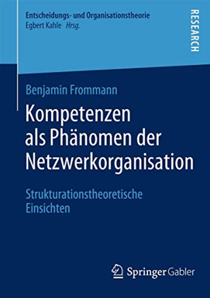 Benjamin Frommann untersucht, ob und unter welchen Voraussetzungen Netzwerke eigene organisationale Kompetenzen entwickeln. Auf der theoretischen Grundlage der Strukturationstheorie nach A. Giddens beschreibt er Unternehmensnetzwerke als soziale Systeme. Das Netzwerk wird als eigenständige Organisationsform neben Markt und Hierarchie aufgefasst. Im Zentrum der Analyse stehen die Kompetenzen von Unternehmungsnetzwerken, die auf den Dimensionen Können, Wollen und Dürfen aufgebaut werden. Hierbei wird insgesamt eine breit gefächerte Übersicht über die Grundlagen und Einflussmöglichkeiten bei der Kompetenzentwicklung gegeben. Die Arbeit bietet der Kompetenzforschung eine gute theoretische Fundierung.