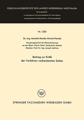 Beitrag zur Kritik der Verfahren vorbestimmter Zeiten