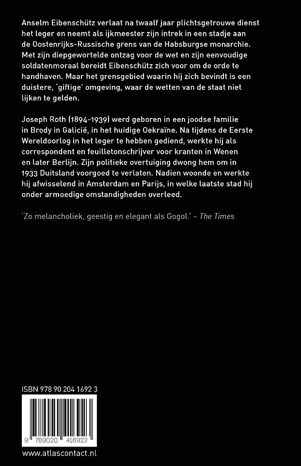 In ‘Het valse gewicht’ van Joseph Roth verlaat Anselm Eibenschütz na twaalf jaar plichtsgetrouwe dienst het leger en neemt als ijkmeester zijn intrek in een stadje aan de Oostenrijks-Russische grens van de Habsburgse monarchie. Met zijn diepgewortelde ontzag voor de wet en zijn eenvoudige soldatenmoraal bereidt Eibenschütz zich voor om de orde te handhaven. Maar het grensgebied waarin hij zich bevindt is een duistere, ‘giftige’ omgeving, waar de wetten van de staat niet lijken te gelden.