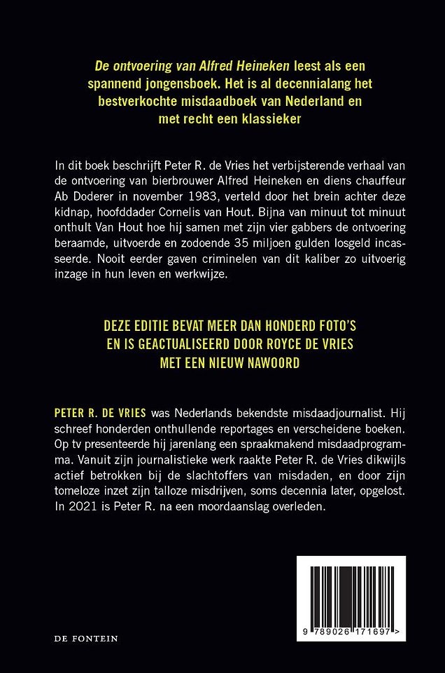 De geïllustreerde editie van deze klassieker, met niet eerder getoond materiaal. Inclusief nieuw nawoord van Royce de Vries. Het verbijsterende verhaal van de ontvoering van bierbrouwer Alfred Heineken en diens chauffeur Ab Doderer. Bijna van minuut tot minuut wordt onthuld hoe de ontvoering beraamd en uitgevoerd werd, en hoe zodoende 35 miljoen gulden losgeld werd geïncasseerd. Nooit eerder kreeg de lezer zo uitvoerig inzage in het leven en de werkwijze van criminelen van dit kaliber.
