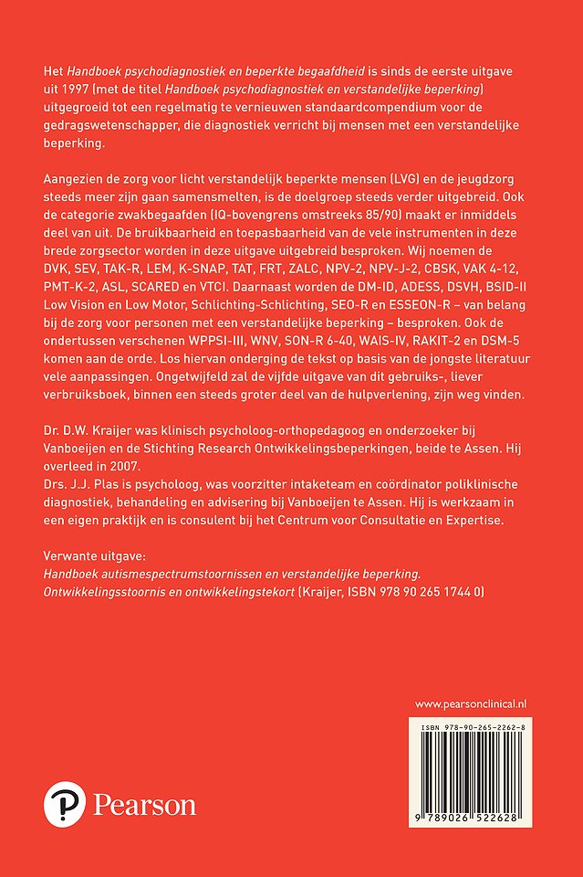 Het Handboek psychodiagnostiek en beperkte begaafdheid is sinds de eerste uitgave uit 1997 (met de titel Handboek psychodiagnostiek en verstandelijke beperking) uitgegroeid tot een regelmatig te vernieuwen standaardcompendium voor de gedragswetenschapper, die diagnostiek verricht bij mensen met een verstandelijke beperking.