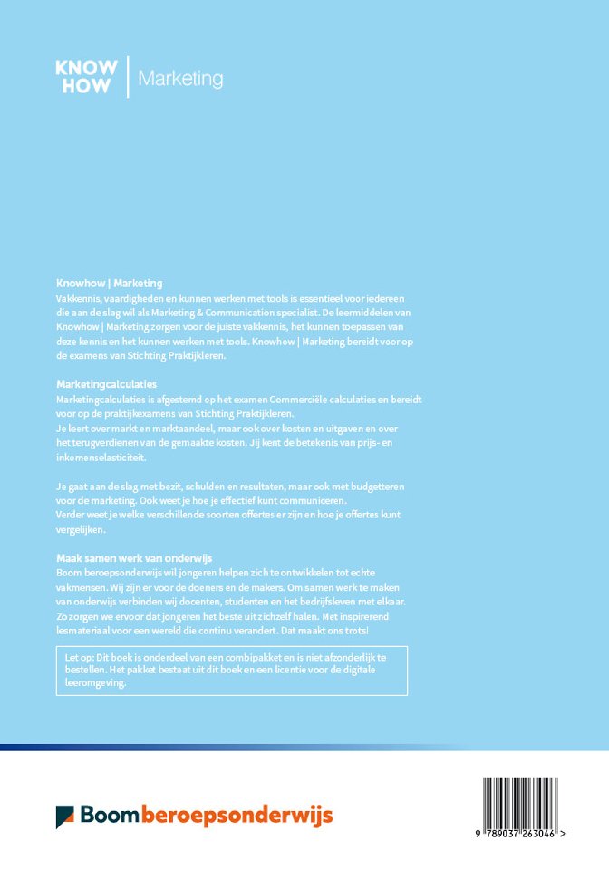 Marketingcalculaties is afgestemd op het examen Commerciële calculaties en bereidt voor op de praktijkexamens van Stichting Praktijkleren.