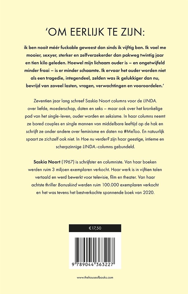 Zeventien jaar lang schreef Saskia Noort columns voor de LINDA. over liefde, moederschap, daten en seks - maar ook over het kronkelige pad van het single-leven, ouder worden en seksisme. In haar columns neemt ze bored couples en single mannen van middelbare leeftijd op de hak en schrijft ze onder andere over feminisme en daten na het #MeToo-tijdperk. En natuurlijk spaart ze zichzelf ook niet. In Hoe nu verder? zijn haar geestige, intieme en scherpzinnige LINDA.-columns gebundeld.