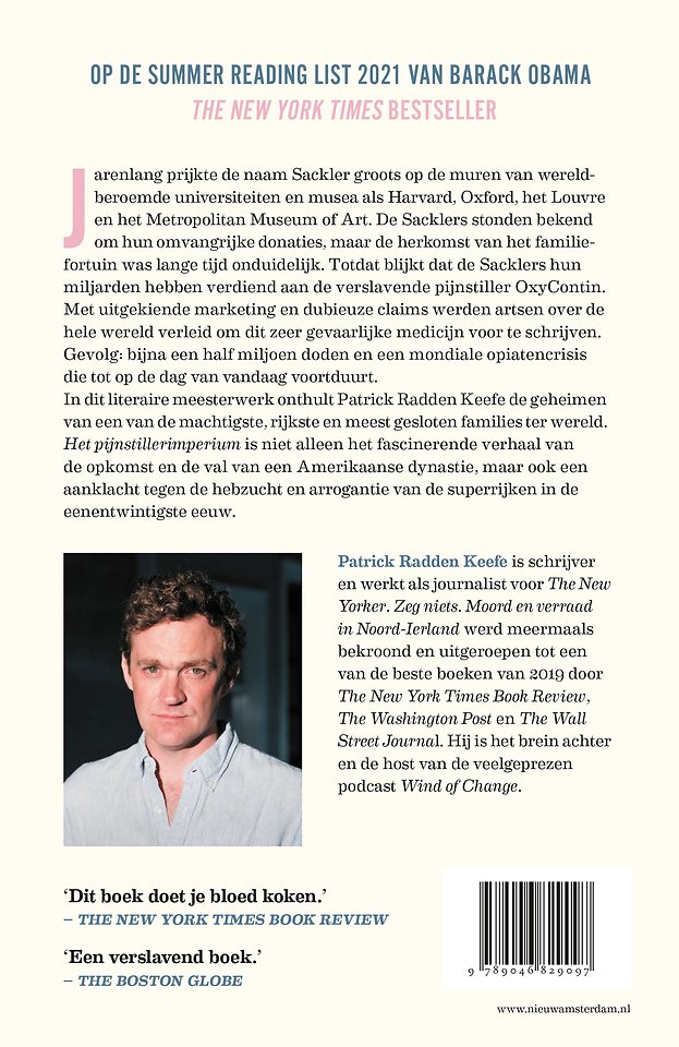 In dit literaire meesterwerk onthult Patrick Radden Keefe de schokkende waarheid die schuilgaat achter een van de rijkste en meest gesloten families ter wereld. 'Het pijnstillerimperium' is het verhaal van de opkomst en de val van een Amerikaanse dynastie, en een aanklacht tegen de hebzucht van de superrijken in de eenentwintigste eeuw.