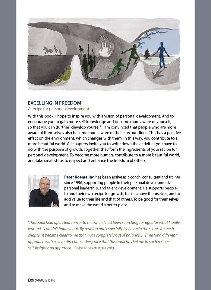With this book, I hope to inspire you with a vision of personal development. And to encourage you to gain more self-knowledge and become more aware of yourself, so that you can (further) develop yourself. I am convinced that people who are more aware of themselves also become more aware of their surroundings. This has a positive effect on the environment, which changes with them. In this way, you contribute to a more beautiful world. All chapters invite you to write down the activities you have to do with the purpose of growth. Together they form the ingredients of your recipe for personal development. To become more human, contribute to a more beautiful world, and take small steps to respect and enhance the freedom of others.