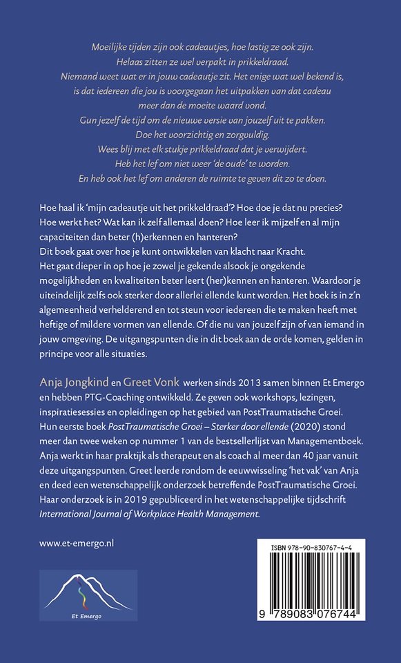 Dit boek gaat over hoe je kunt ontwikkelen van klacht naar Kracht. Het gaat dieper in op hoe je zowel je gekende alsook je ongekende mogelijkheden en kwaliteiten beter leert (her)kennen en hanteren. Waardoor je uiteindelijk zelfs ook sterker door allerlei ellende kunt worden. Het boek is in z’n algemeenheid verhelderend en tot steun voor iedereen die te maken heeft met heftige of mildere vormen van ellende. Of die nu van jouzelf zijn of van iemand in jouw omgeving. De uitgangspunten die in dit boek aan de orde komen, gelden in principe voor alle situaties.