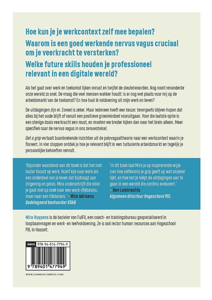 Get a grip vertaalt baanbrekende inzichten uit de polyvagaaltheorie naar een werkcontext waarin je floreert. In vier stappen ontdek je hoe je relevant blijft in een turbulente arbeidsmarkt en tegelijk je persoonlijke behoeften vervult