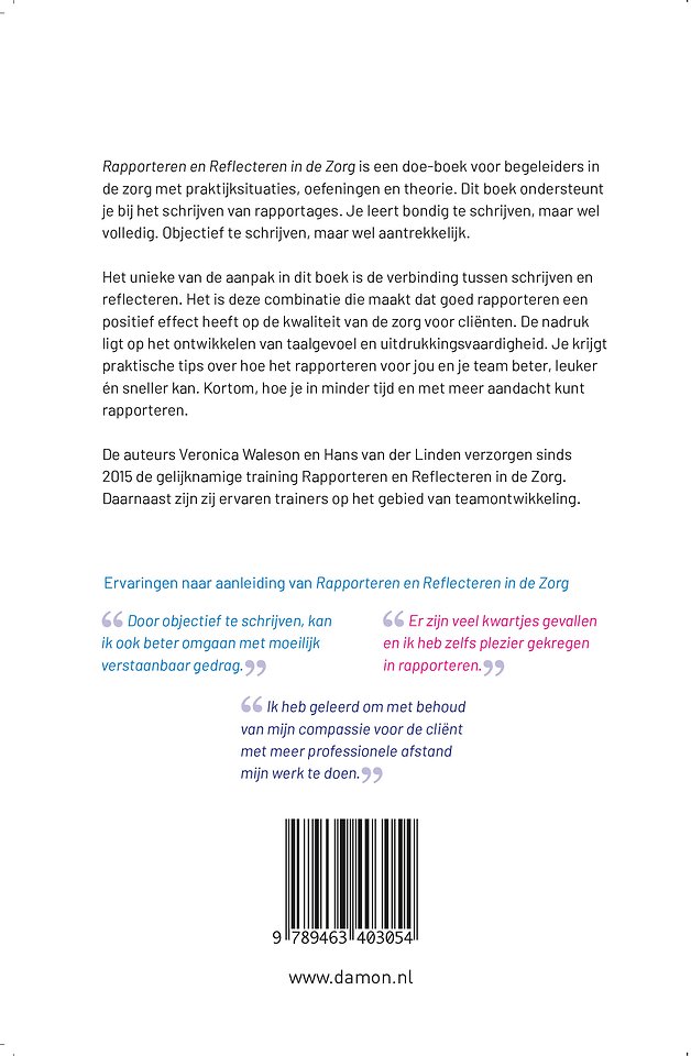 Het unieke van de aanpak in dit boek is de verbinding tussen schrijven en reflecteren. Het is deze combinatie die maakt dat goed rapporteren een positief effect heeft op de kwaliteit van de zorg voor cliënten. De nadruk ligt op het ontwikkelen van taalgevoel en uitdrukkingsvaardigheid. Je krijgt praktische tips over hoe het rapporteren voor jou en je team beter, leuker én sneller kan. Kortom, hoe je in minder tijd en met meer aandacht kunt rapporteren.