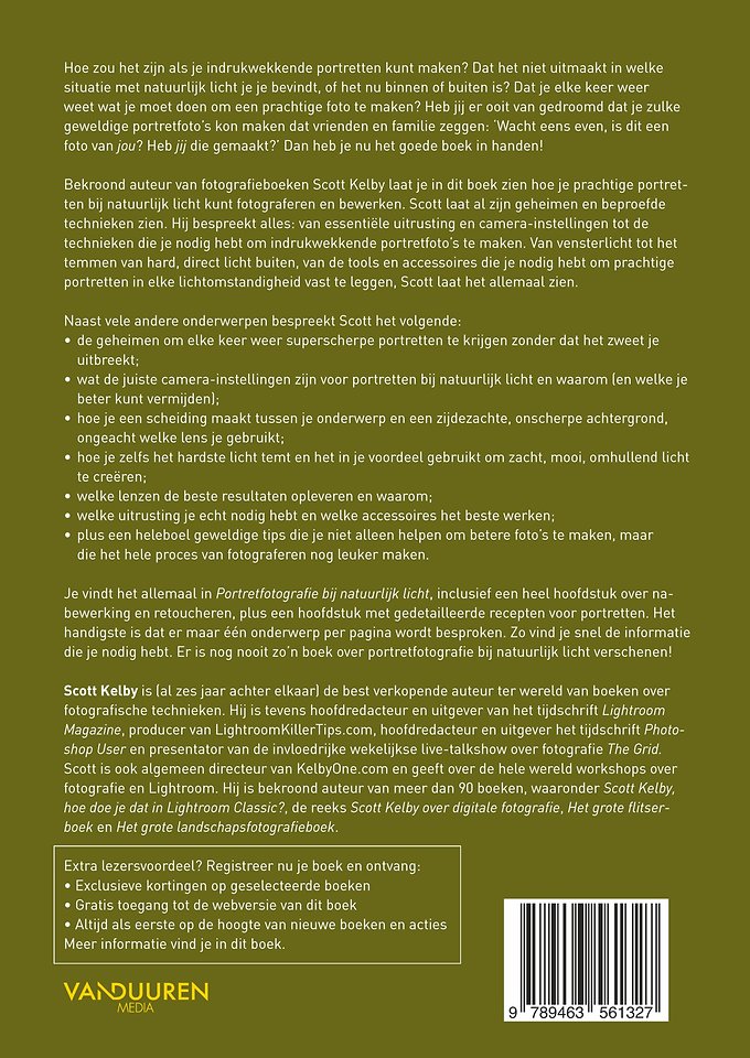 Hoe zou het zijn als je indrukwekkende portretten kunt maken? Dat het niet uitmaakt in welke situatie met natuurlijk licht je je bevindt, of het nu binnen of buiten is? Dat je elke keer weer weet wat je moet doen om een prachtige foto te maken? Heb jij er ooit van gedroomd dat je zulke geweldige portretfoto’s kon maken dat vrienden en familie zeggen: ‘Wacht eens even, is dit een foto van jou? Heb jij die gemaakt?’ Dan heb je nu het goede boek in handen!