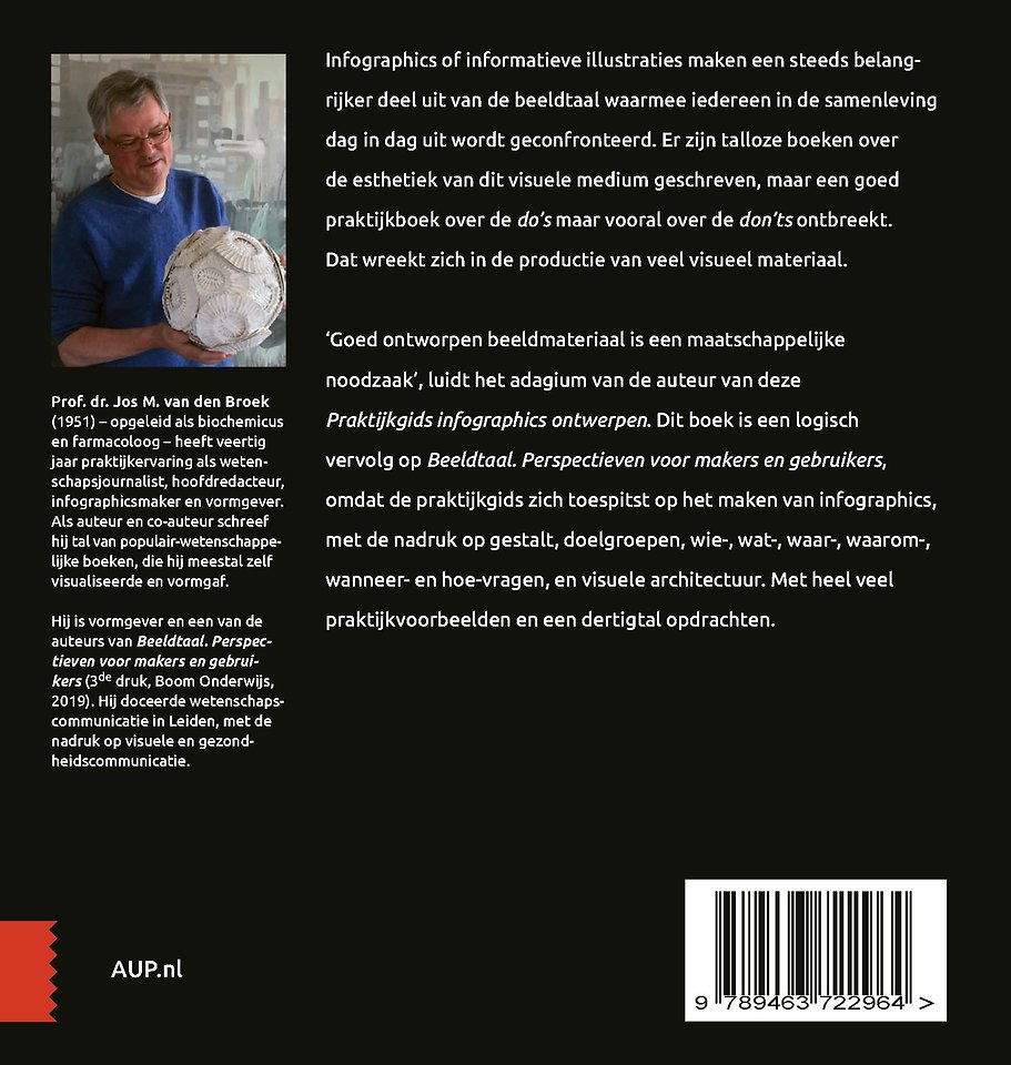 Infographics of informatieve illustraties maken een steeds belangrijker deel uit van de beeldtaal waarmee iedereen in de samenleving dag in dag uit wordt geconfronteerd. Er zijn talloze boeken geschreven over de esthetiek van dit visuele medium, maar een goed praktijkboek over do’s & don’t’s ontbreekt. Dat wreekt zich in de productie van veel visueel materiaal dat ver onder de maat blijft.