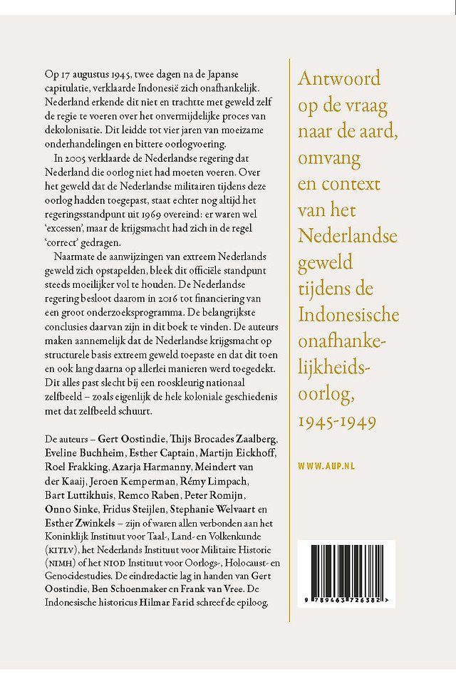 Vanuit verschillende invalshoeken behandelen de auteurs de vraag in welke mate de Nederlandse krijgsmacht op structurele basis extreem geweld toepaste en hoe dat optreden kan worden verklaard. Ook besteden zij aandacht aan de vraag hoe de Nederlandse overheid en samenleving tijdens en na de oorlog met dit extreme geweld zijn omgegaan. Werd het besproken, bestraft of juist toegedekt, en welke ontwikkeling is daarin zichtbaar?