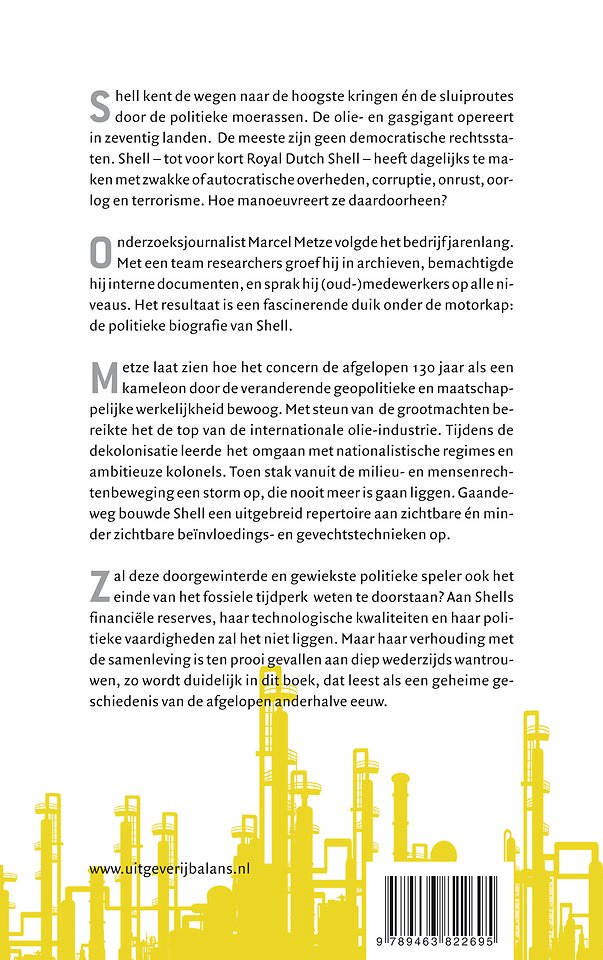 Meer over Marcel MetzeShell kent de wegen naar de hoogste kringen én de sluiproutes door de politieke moerassen van de wereld. De olie- en gasgigant opereert in zeventig landen. Lang niet alle zijn democratische rechtsstaten: Shell – tot voor kort Royal Dutch Shell - heeft dagelijks te maken met zwakke of autocratische overheden, misdaad en corruptie, maatschappelijke onrust, oorlog en terrorisme. Hoe manoeuvreert ze daar doorheen?