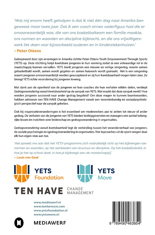 Gedragsverandering vanuit kwetsbaarheid legt de verbinding tussen het veranderverhaal van jongeren, de sociale psychologie en (gedrags)verandering in organisaties. Vier topcoaches uit de sport voegen daar elk hun eigen visie aan toe.