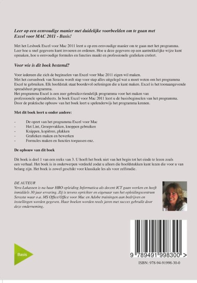 Dit boek is deel 1 van een reeks van 3. U hoeft het boek niet van het begin tot het einde te lezen zoals een verhaal. Het boek Excel voor Mac 2011 - Basis is in onderwerpen verdeeld zodat u alleen die hoofdstukken kunt lezen die voor u van belang zijn. Het boek is zowel geschikt voor klassikale les als voor zelfstudie.
