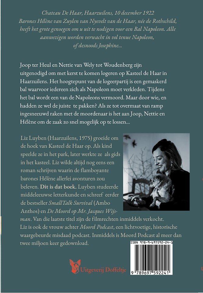 Liz Luyben (Haarzuilens, 1975) groeide om de hoek van Kasteel de Haar op. Als kind speelde ze in het park, later werkte ze als gids in het kasteel. Liz wilde altijd nog eens een roman schrijven waarin de flamboyante barones Hélène allerlei avonturen zou beleven. Dit is dat boek. Luyben studeerde middeleeuwse letterkunde en schreef eerder de bestseller SmallTalk Survival (Ambo Anthos) en De Moord op Mr. Jacques Wijsman man. Van die laatste titel zijn de filmrechten inmiddels verkocht. Liz is ook de vrouw achter Moord Podcast, een lichtvoetige, historische waargebeurde misdaad podcast. Inmiddels is Moord Podcast al meer dan twee miljoen keer gedownload.